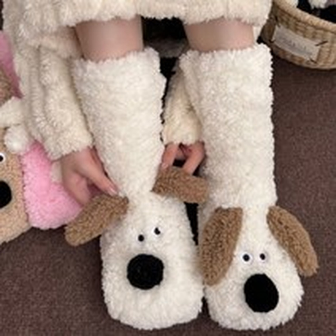 양말의 디자인은 귀여운 강아지 패턴으로