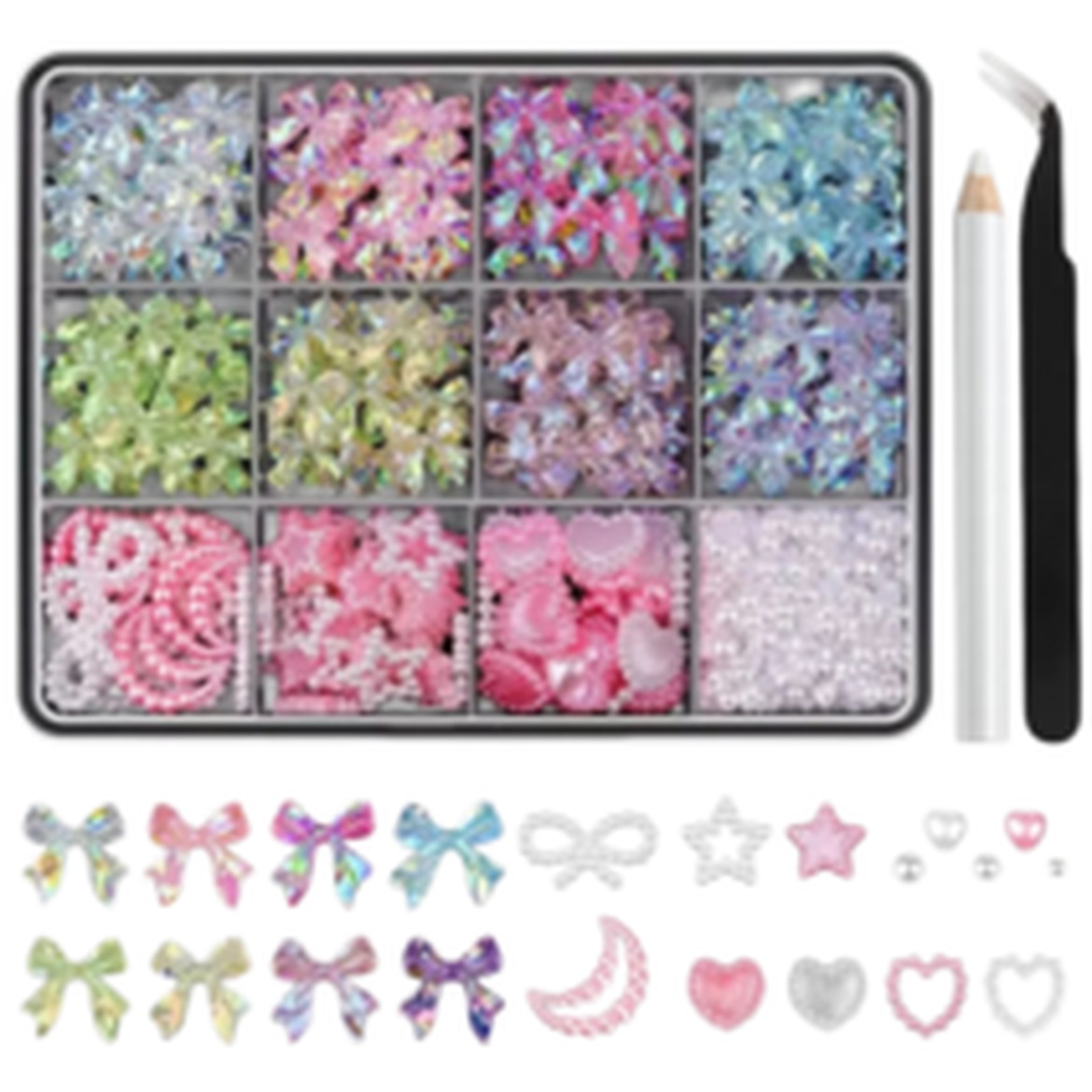 이 대용량 리본 하트 네일 파츠 세트는