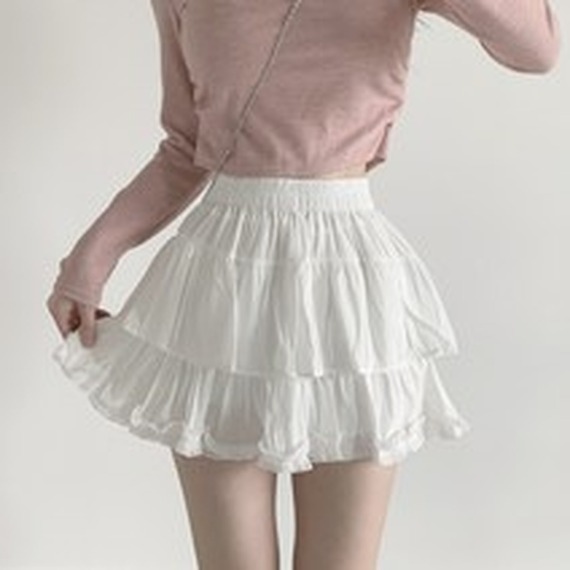 퍼프 소매와 심플한 스커트 조합이