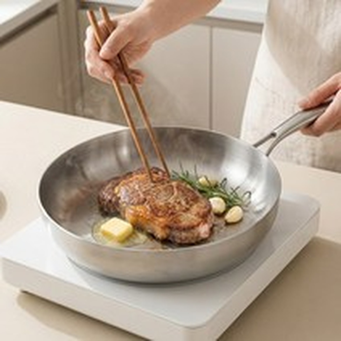 여러 층으로 되어 있어서 열 전도가 뛰어나고, 인덕션에도 호환성이 좋다는 점이 매력적이었어요.